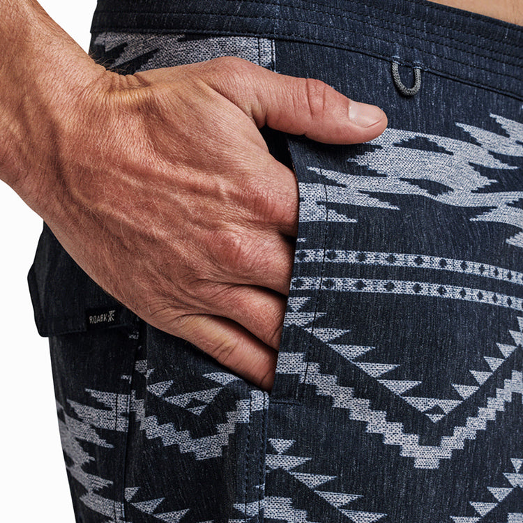 Relax, move, and explore in the Chiller 17" Boardshorts—a versatile, eco-conscious design crafted for adventure on land or in the waves. Built with a hemp and recycled Repreve™ fabric blend, these boardshorts feature 4-way stretch for unrestricted motion, a cinchable drawstring waistband for the perfect fit, and durable flat-felled seams to keep you comfortable all day.Complete with hand pockets and a back drop pocket, the Chiller is your go-to for easy transitions between surf sessions and laid-back moments onshore. Lightweight, functional, and sustainably made, these boardshorts embody Roark's spirit of exploration.