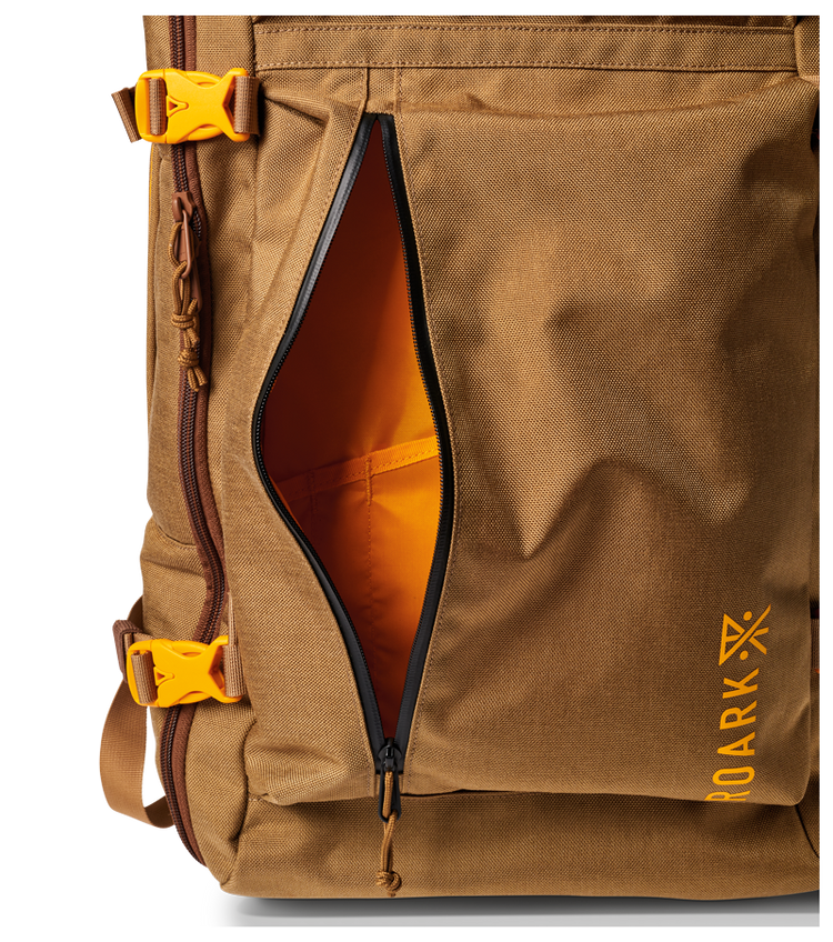 Roark’s most versatile purpose built pack has increased storage and accessibility while providing stability through a stowable hip belt. Grab the carry handle when looking for an exit route or to catch your next flight.