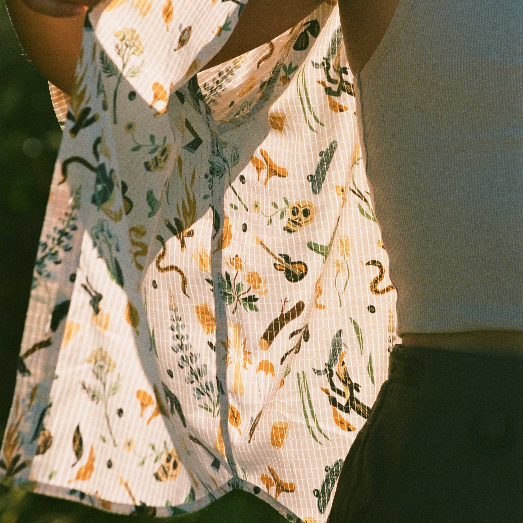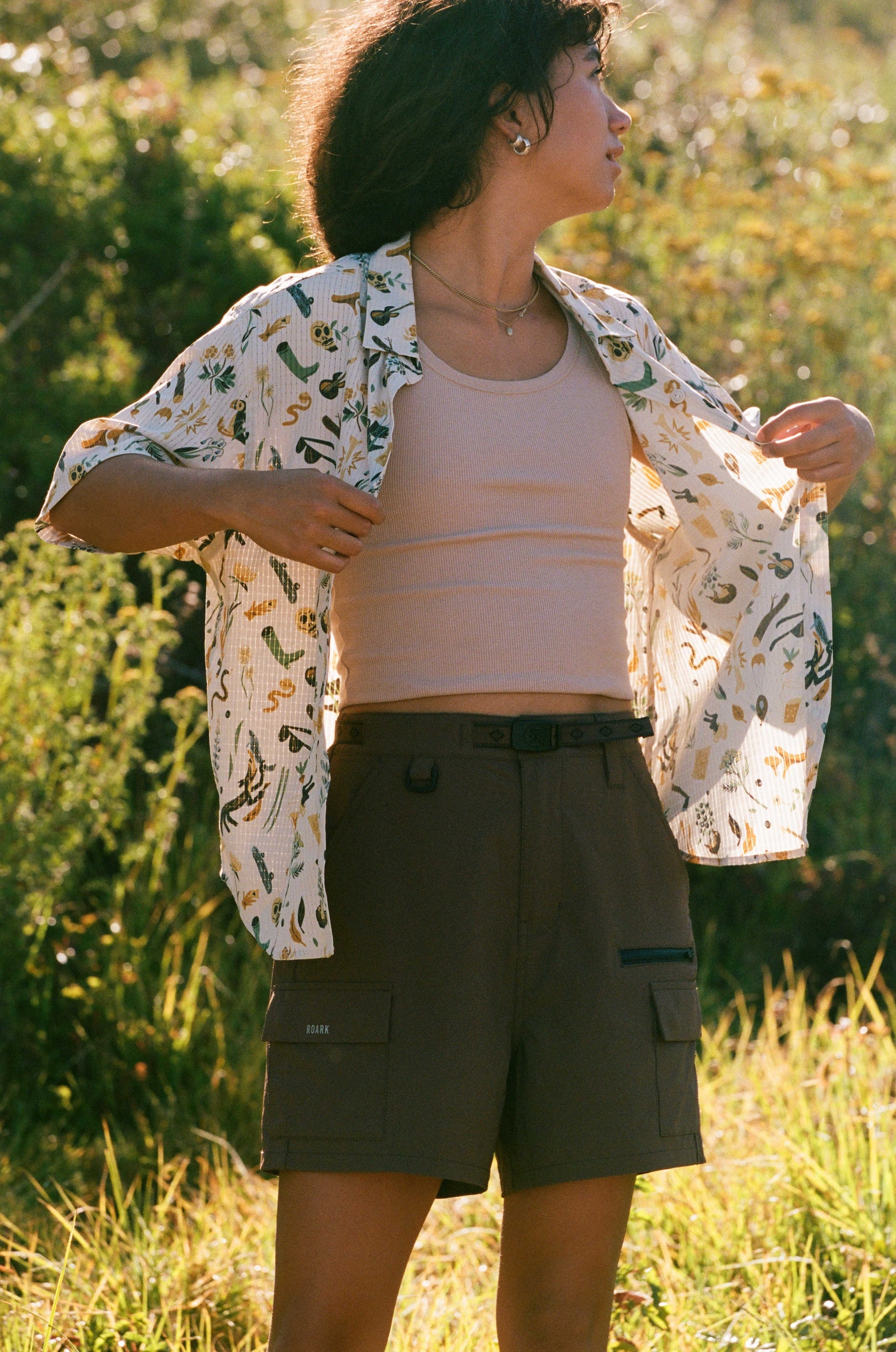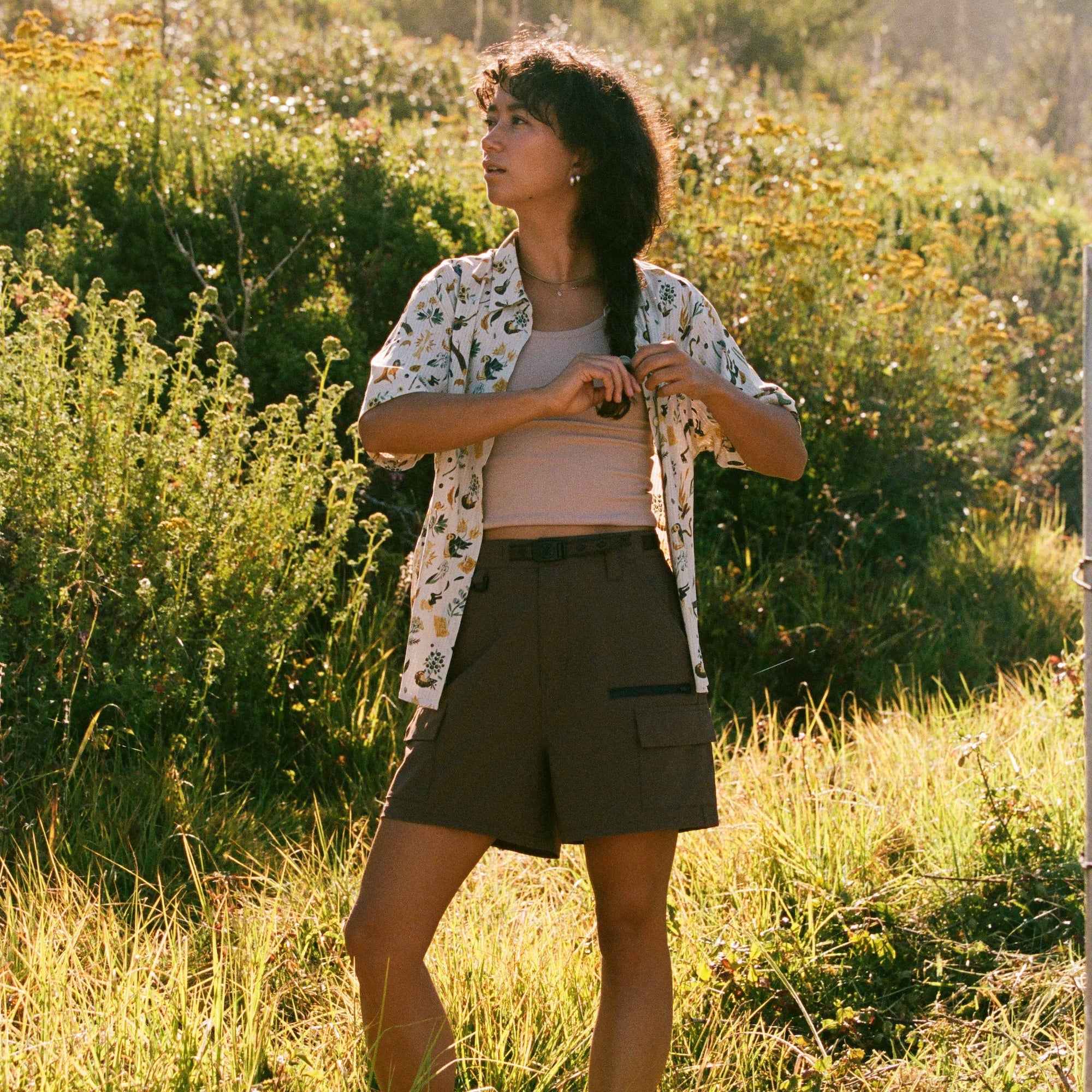 Clear your closet. For those hot summer days at the beach and those high-desert hikes, you're going to want The Bless Up Short Sleeve. Crafted from breathable, perforated fabric to keep you covered from the elements, but retain a cool temp and moisture-wicking quick-dry fabric, you'll be comfortable all day long. Designed with an oversized fit and rubberized buttons, you won't believe the durability and strength of this lightweight shirt, it'll be like you're wearing nothing at all. Style with your favorite black triangle bikini or Well Worn Tank for added flare.
