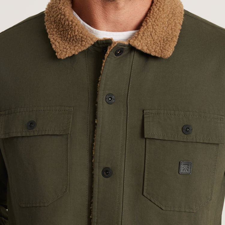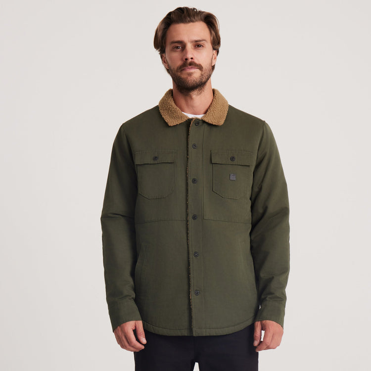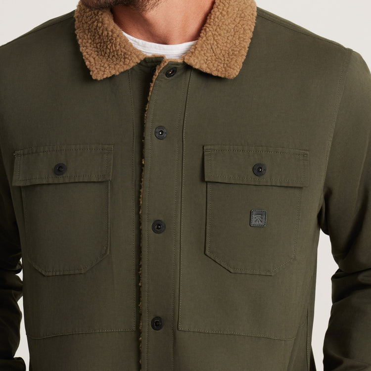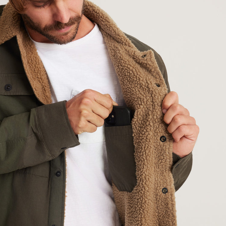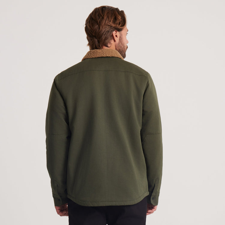 Originally created following a trip to the windblown, sea-whipped, remote and magical Outer Hebrides, this casual cotton twill over shirt features a thin high pile fleece lining, that can work buttoned down or open in the front for an easy wear.
