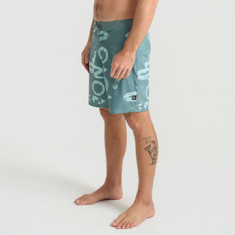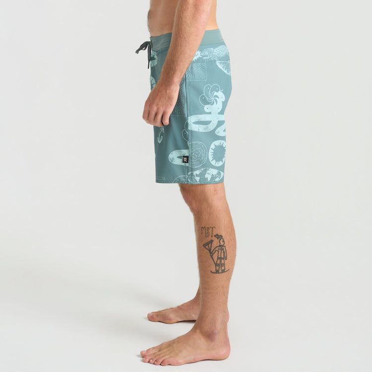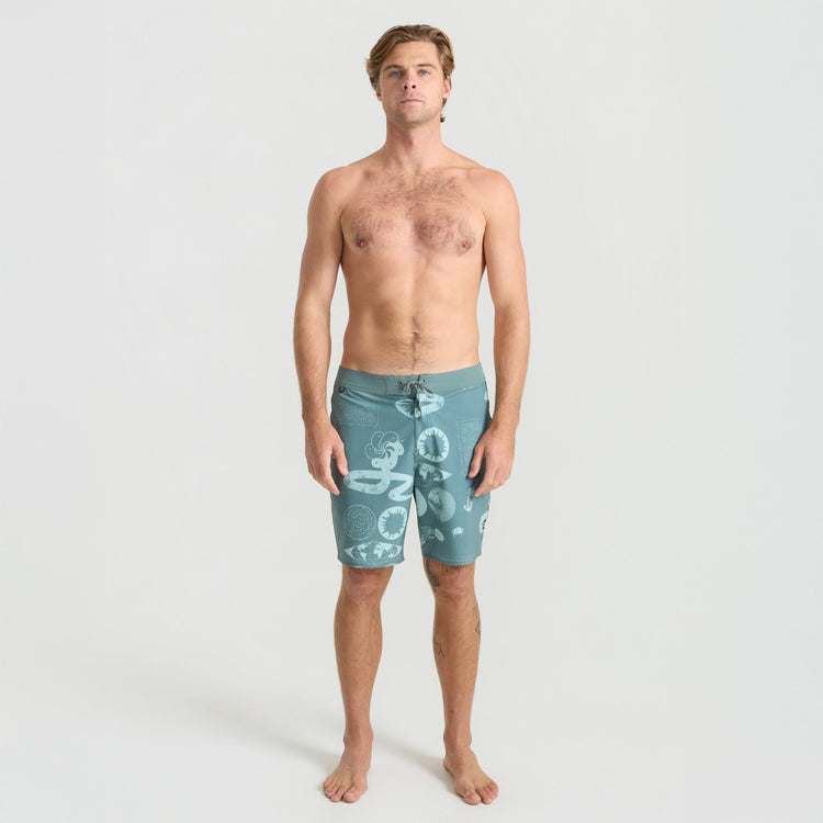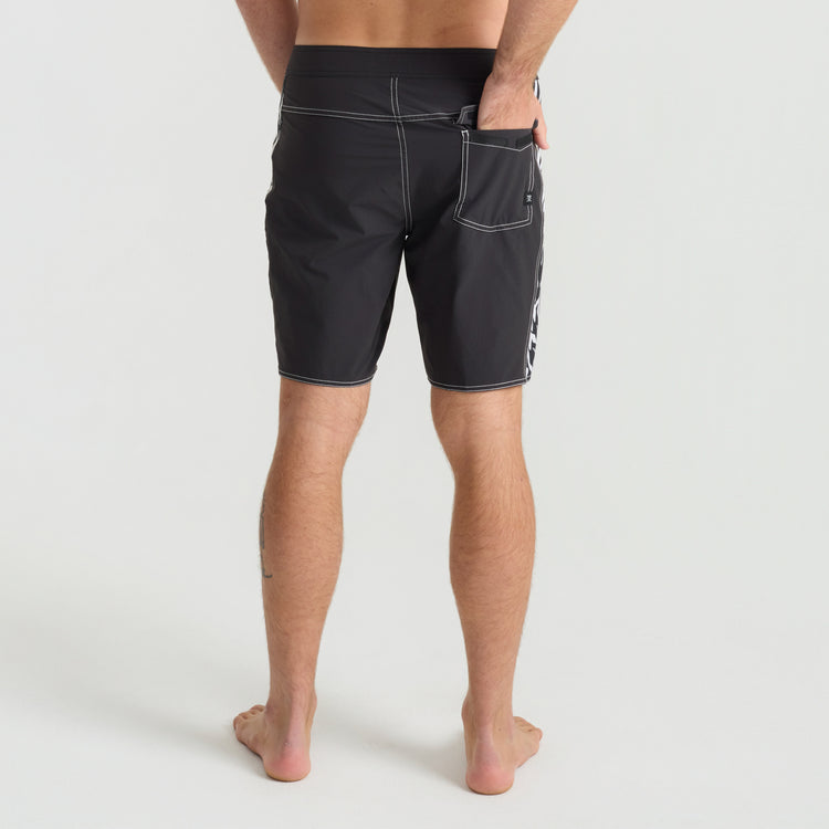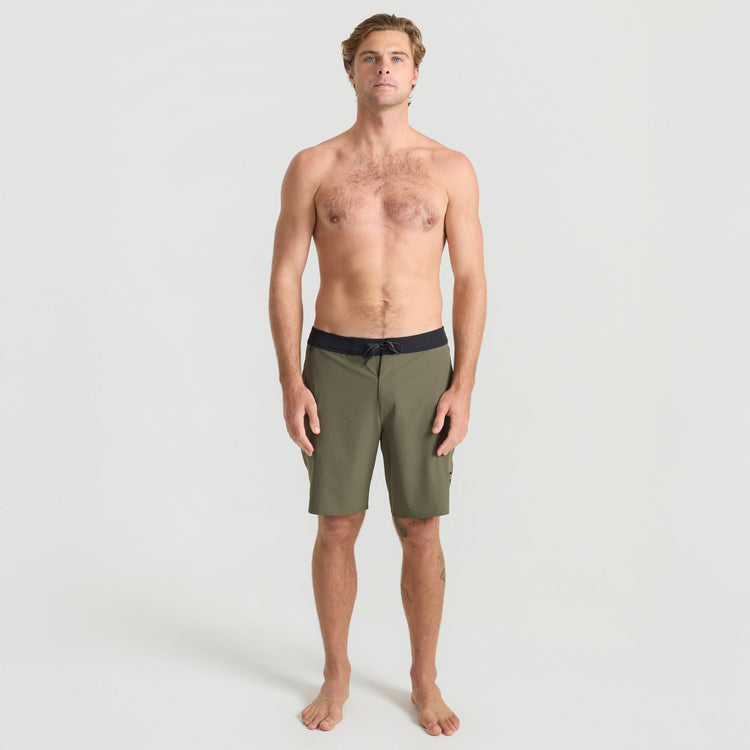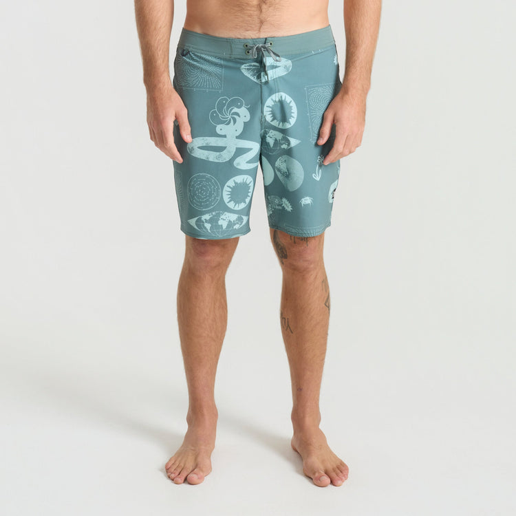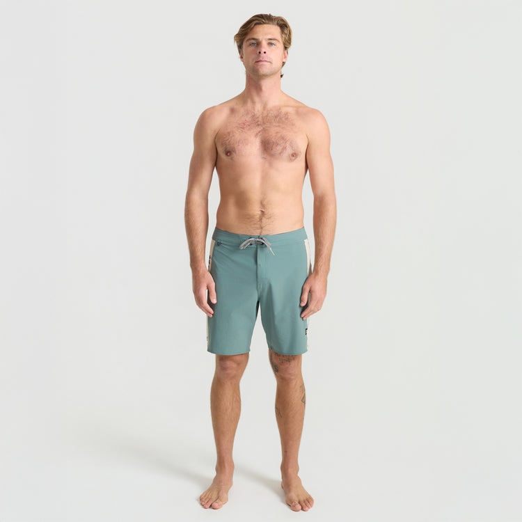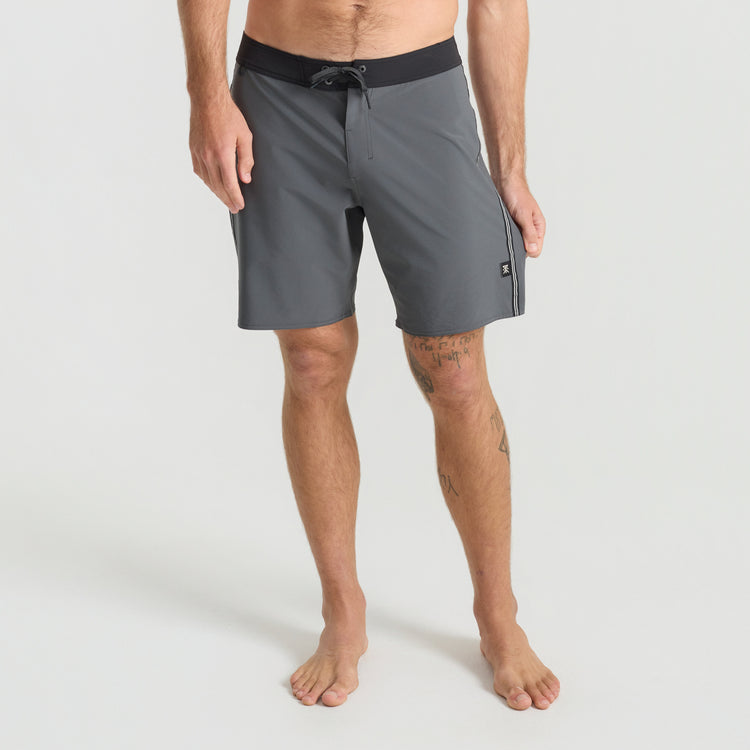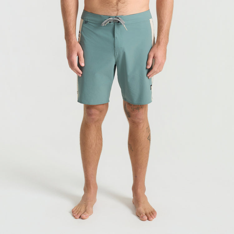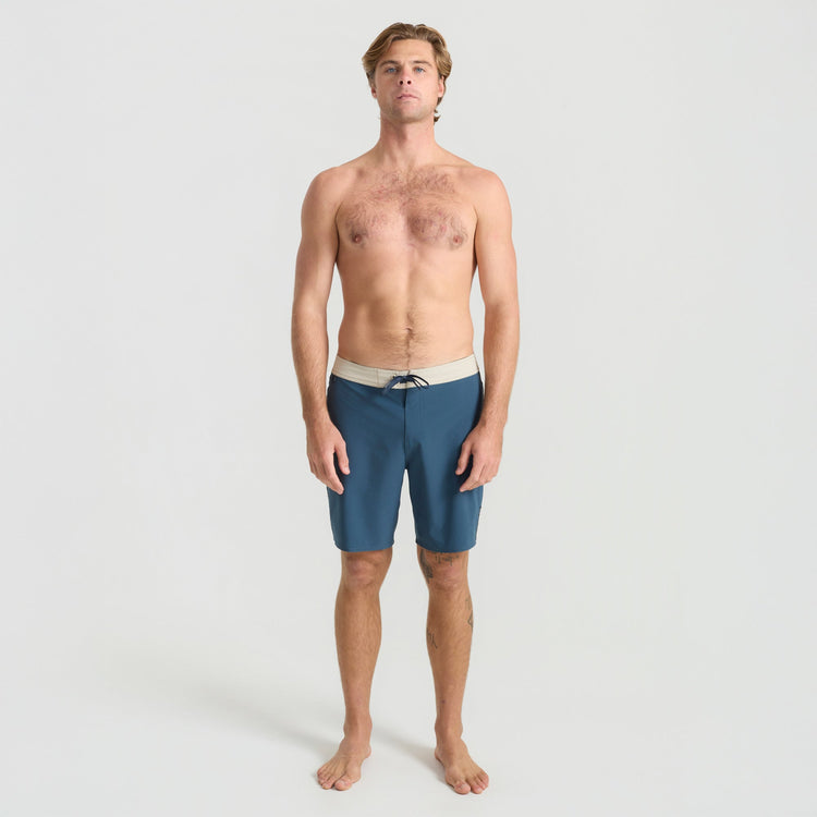 Built From the Inside Out. We reimagined our boardshorts by starting from the core and reconstructing them for optimal performance and durability. With an 18.5” outseam and crafted from an eco-conscious blend of 49% Recycled Polyester, 35% Polyester, 8% Hemp, and 8% Elastane these boardshorts offer 4-way stretch for unrestricted movement and durability.