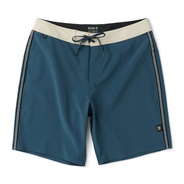 The Passage Boardshorts feature clean-finished, flat-felled seams to minimize chafing and enhance durability. They include a back pocket with an embroidered eyelet for drainage and key loop placement for added convenience.