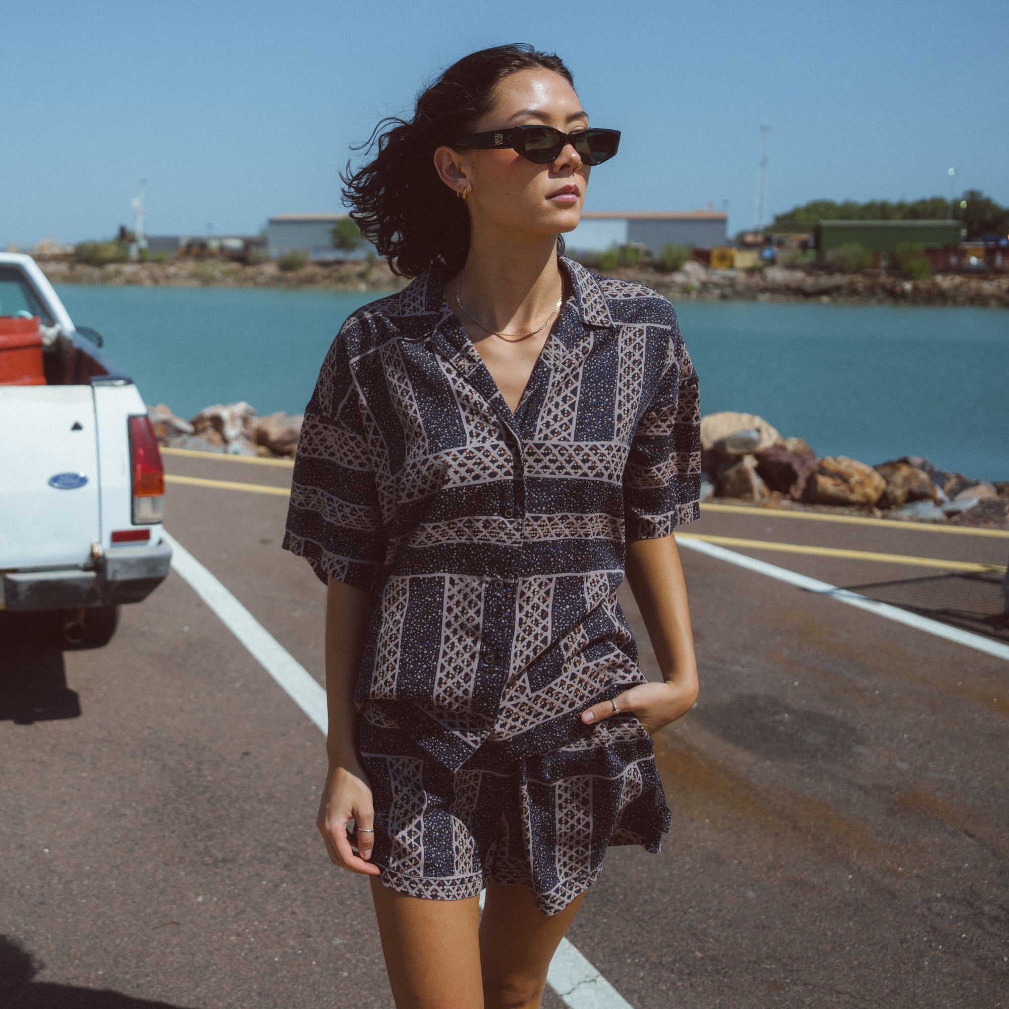 Meet the breezy, summer button-up of your dreams — The Riviera Short Sleeve. Inspired by the heat of the Mediterranean and cut in breathable cotton lace with a customized pattern, this oversized shirt is ready to go overseas. Adorned with faux shell buttons and a delicate camp collar, this shirt is the ultimate summer throw-on.