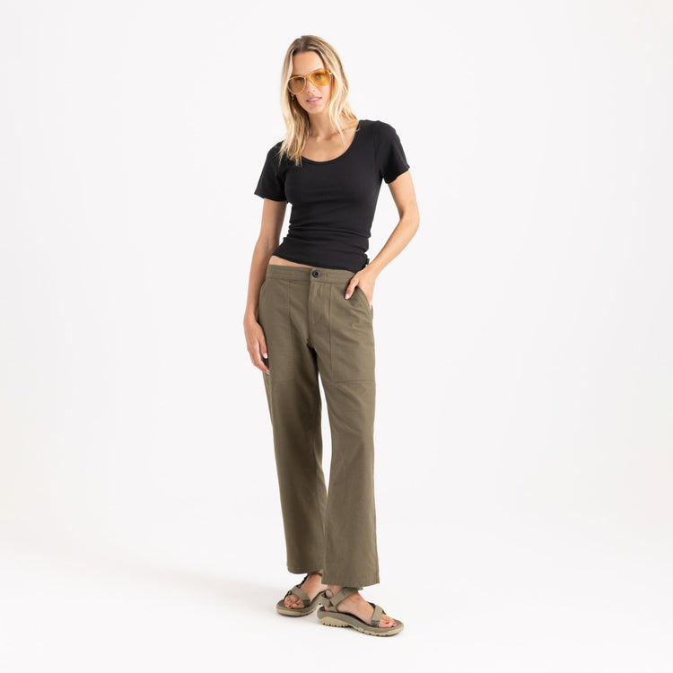 With a cropped fit that pairs effortlessly with high-waisted bottoms, this tee offers a flattering, versatile silhouette. Thoughtfully designed utility pockets and a tool loop add a functional edge, making it as practical as it is stylish. Whether worn solo or layered, the Wind Worn Tee easily transitions from active days to relaxed evenings.